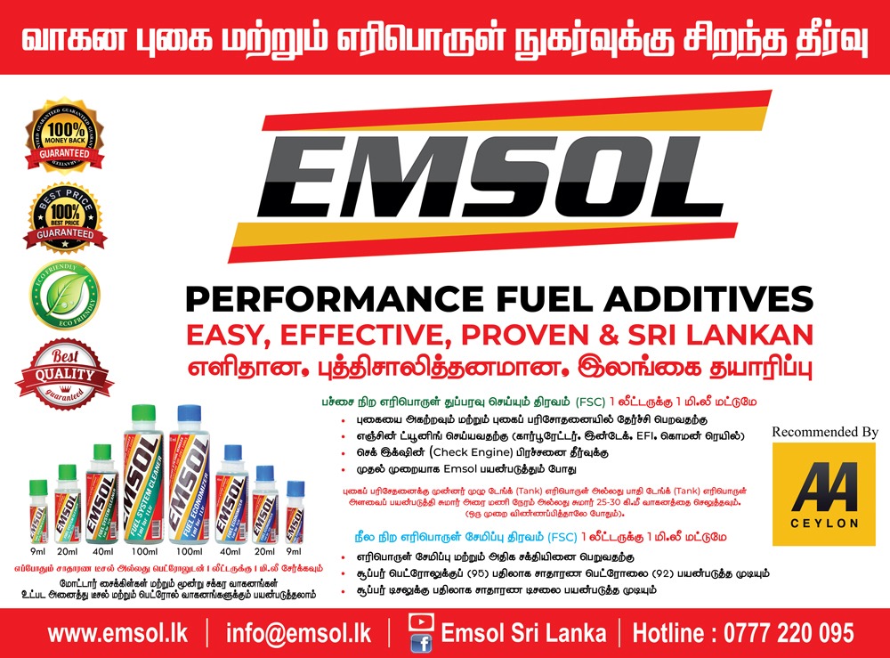 உங்கள் வாகனப் புகையை கட்டுப்படுத்தி வாகனப் புகைப் பரிசோதனையில் மிகவும் எளிதில் தேர்ச்சி பெறவும் என்ஜின் கோளாறுகளை சீர் செய்து நீண்டகாலம் உங்கள் வாகனங்களில் எவ்வித இயந்திரவியல் சிக்கல்கள் இல்லாமலும் இன்ஜின் பேண்தகு முறையை ஒழுங்கமைத்து இன்ஜின் டீசல் வடிகட்டியை சரி செய்யவும் நாட வேண்டிய ஒரே உற்பத்தி பொருள் EMSOL ஏரிபொருள் தொகுதி சுத்திகரிப்பான் ஆகும்.